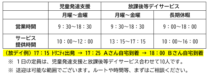 営業時間・送迎